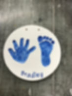 Clay impressions are done by appointment only. Appointments take approximately 15 minutes. During your appointment, we will press your child's print into wet clay, help you select the plaque/ornament style and colors, and you're done. Leave the rest to us!